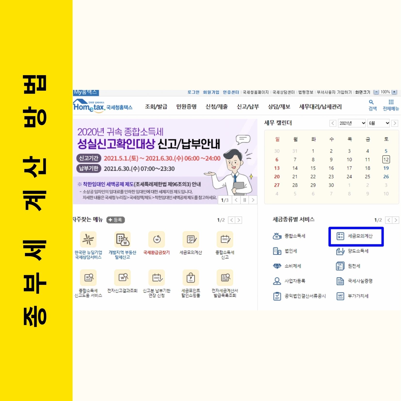 종부세는 국세청 홈택스에서 모의 계산이 가능합니다. 계산 하는 방법은 다음과 같습니다.